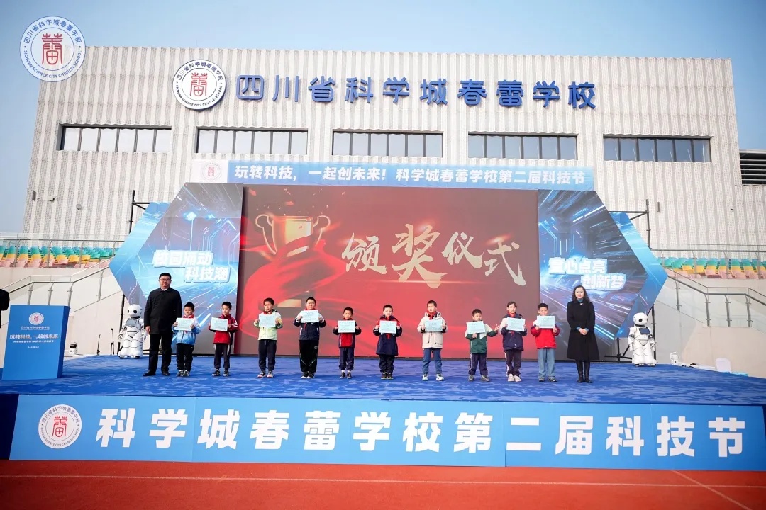 2025年11月28日,科学城春蕾学校第二届科技节闭幕式暨颁奖典礼在学校操场隆重举行。为期一个月的科技活动月,在全校师生的共同参与和热烈氛围中画上圆满句号。