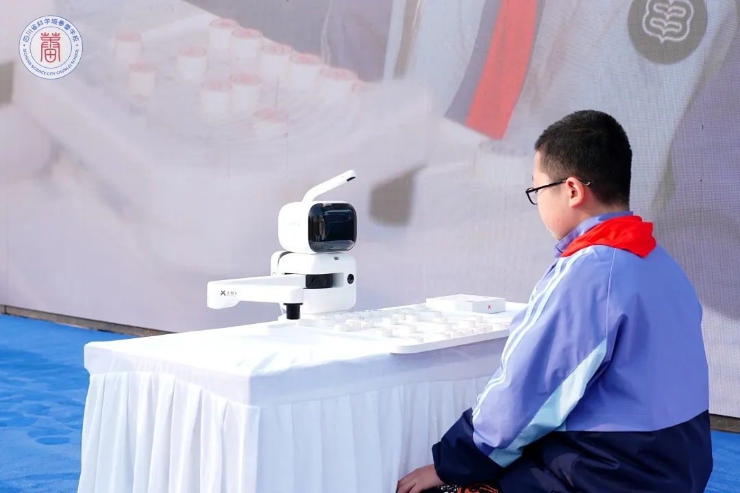 人机智力对决!胡昊然同学与机器人对弈五子棋,机器人凭借强大的算法精准落子,展现了人工智能的强大;中国象棋对弈中,刘名璞同学深度思考,力克智能博弈系统,体现了人类智慧灵活性。对弈活动融合态势感知等前沿技术,生动演绎“AI+教育”创新场景,在虚实对抗中激发青少年探索科技的无限可能!